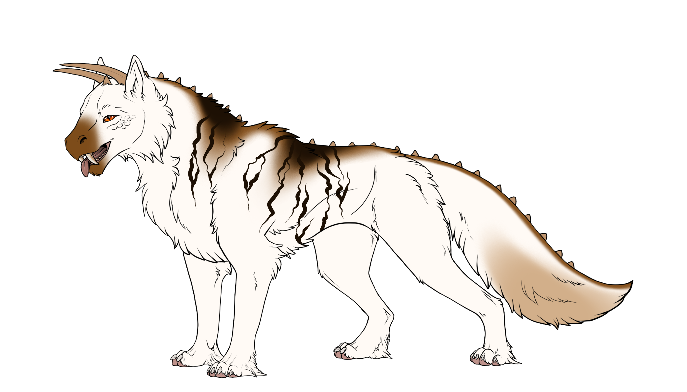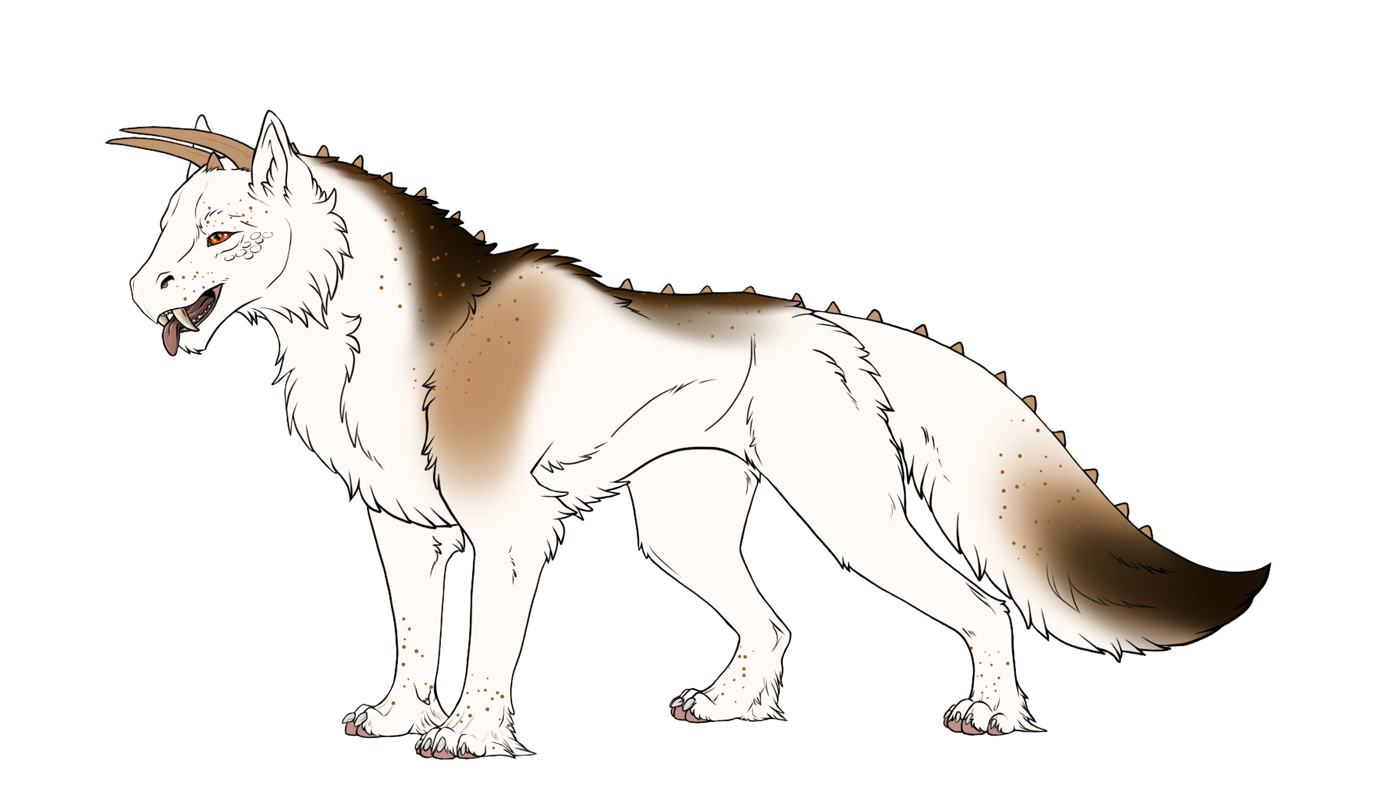 Sunglow with white base, dark dorsal stripe, some soft streaks and Spotting present