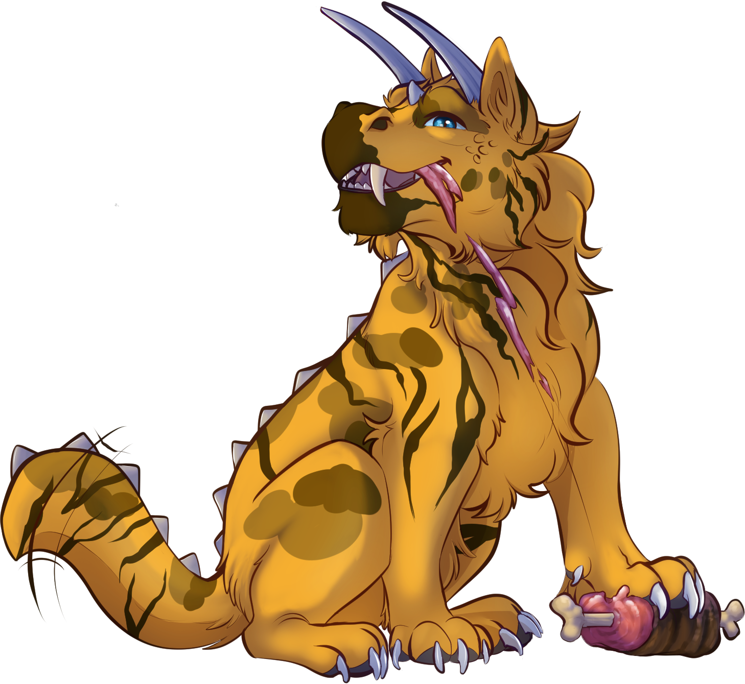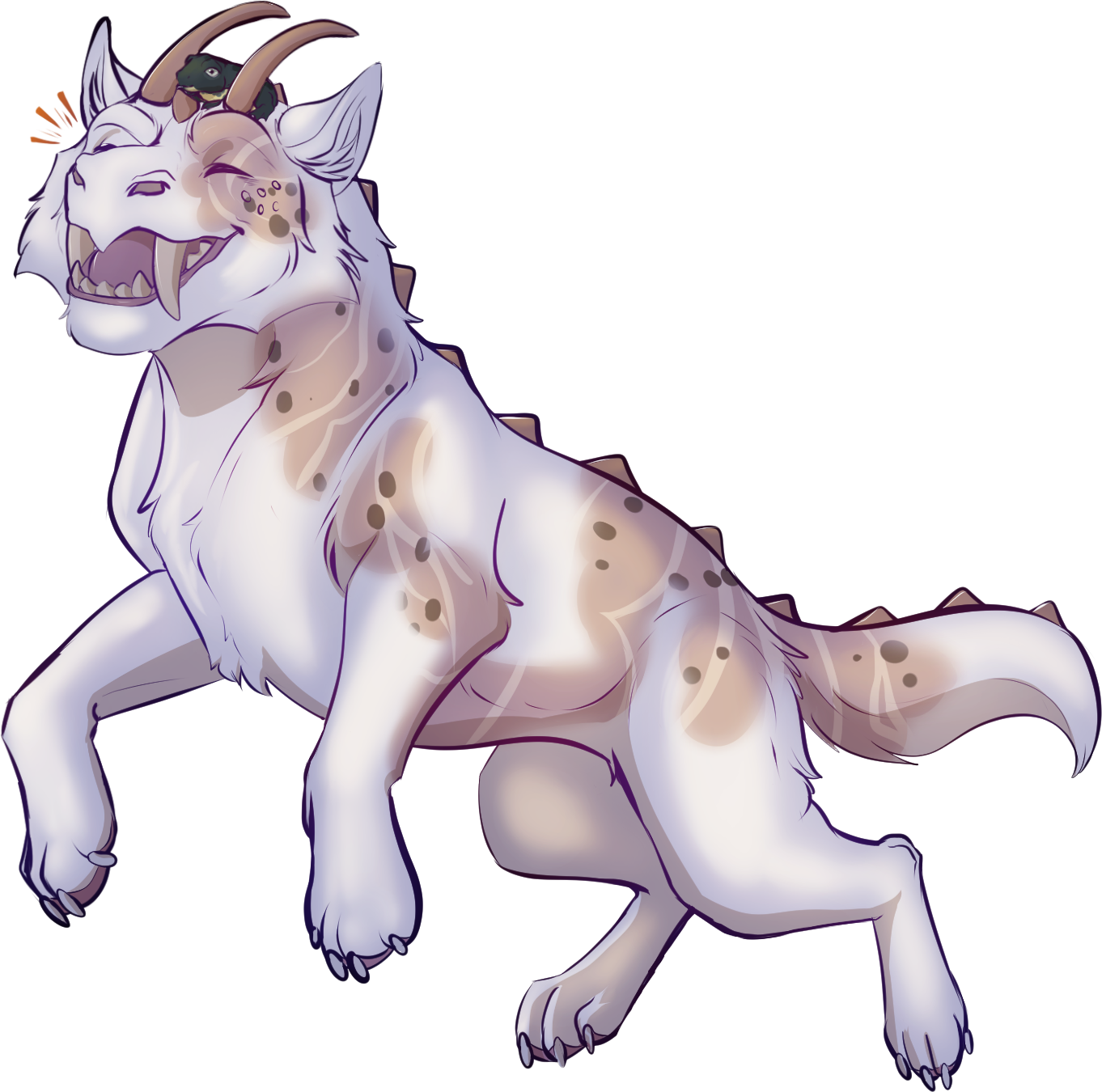 Vishuls have long and slim legs with canine paws, long tail and usually small spinal spikes all the way from neck to the tip of the tail. Only exception for the spinal spikes is when the Vishul has the